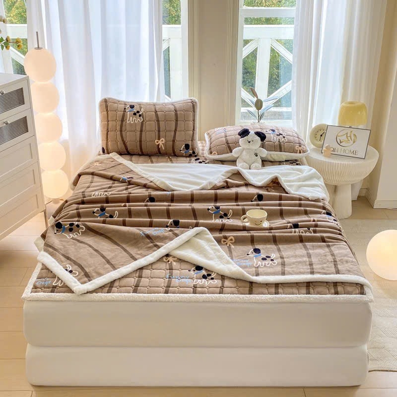 Dạ chào bạn, set Nỉ Nhung Chăn Ga Trần 5 món bao gồm:
